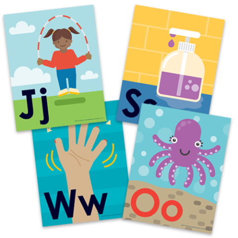 The Countdown Wall Cards offer alphabetic word/sound cues to engage emerging readers, and they are designed to reinforce the teaching provided in the Countdown lessons visually.