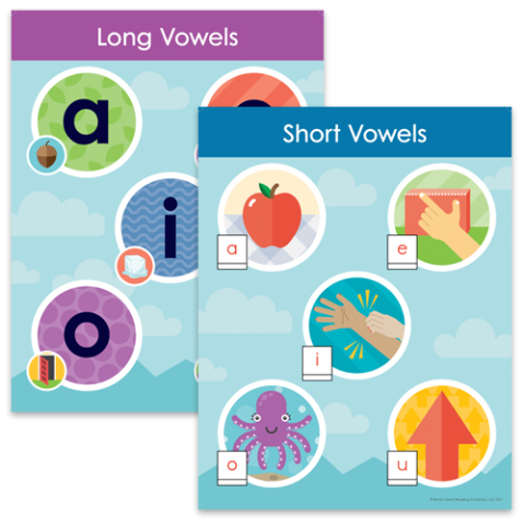 The Countdown Vowel Posters set includes a short and long vowel poster, and they are designed to visually reinforce the teaching provided in the Countdown lessons.