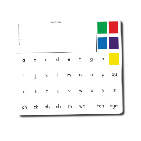 Magnetic, single sided, dry erase whiteboard printed with letters and other graphemes. For use with magnetic letter tiles. TILES NOT INCLUDED.